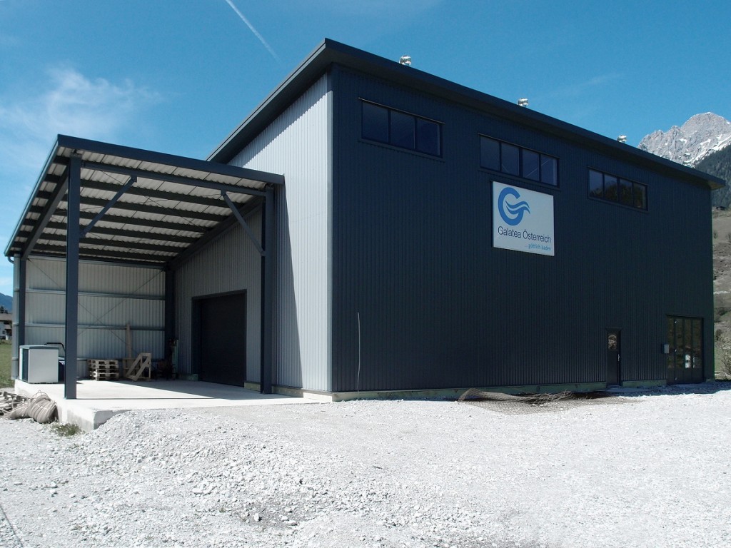 Isolierte Lagerhalle Leogang [2017-05-22] Isolierten Lagerhalle mit Pultdach, 16,2 x 20 x 8,5 m. Weitere Hallen finden Sie in den Referenzen.